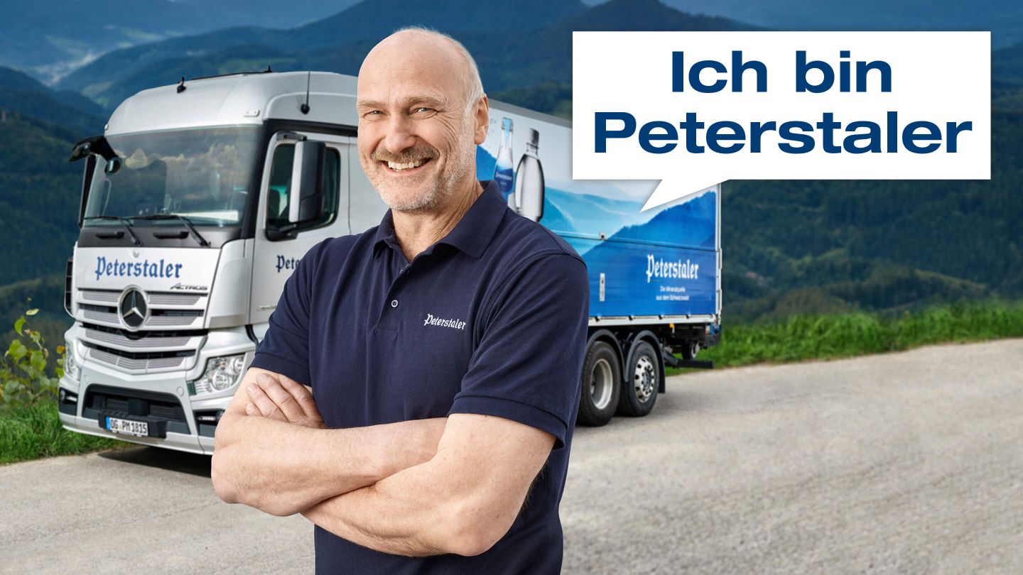 Er ist stolz auf das, was er auf seinem 40-Tonner transportiert. Das gute Mineralwasser der Peterstaler Mineralquellen. Denn für ihn ist es das beste Wasser. Er trinkt es selbst am liebsten. Andy Huber fährt seit 35 Jahren Peterstaler Mineralwasser in alle Himmelsrichtungen.